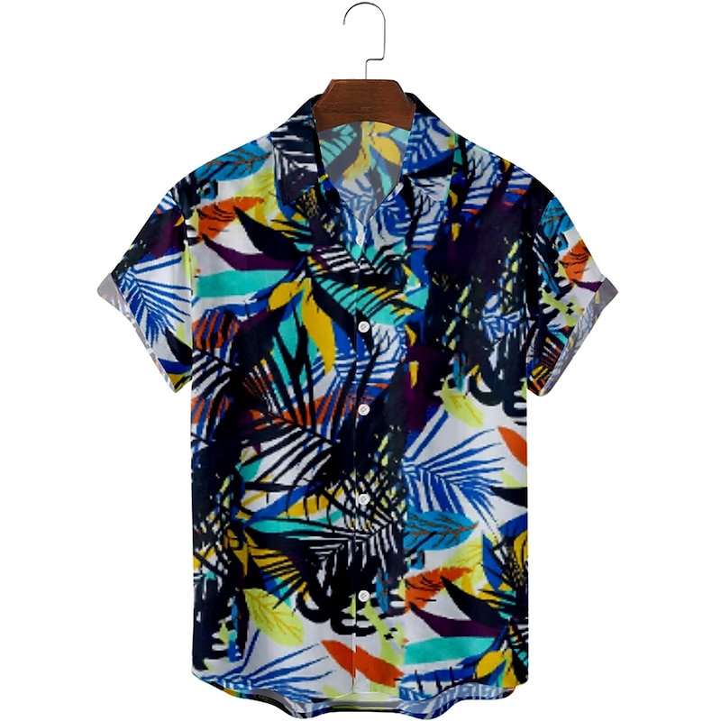 Men's Floral Graphic Palm Leaf Shirt Summer Hawaiian Shirt Aloha Shirt Short Sleeve Shirt Collar Fashion Designer Lightweight Street Daily Holiday Blue and White 18 blue 19 blue S M L 6