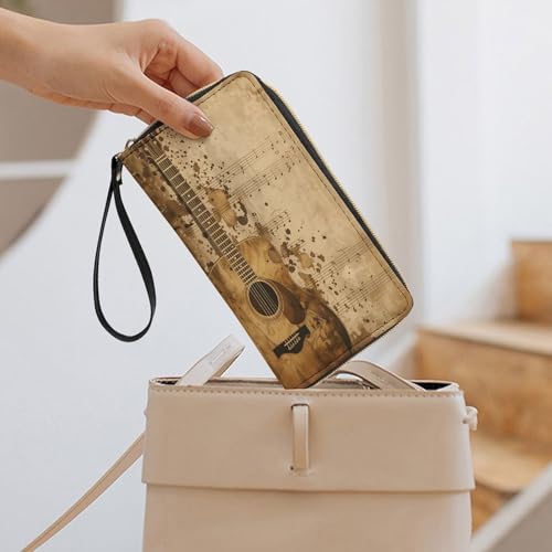 HOT ! Guitar Sheetmusic Women's Wallet Wristlet Zipper Purse with Hand Strap Travel Credit Card Holder for Daily Use Gifts