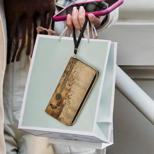 Guitar Sheetmusic Women's Wallet Wristlet Zipper Purse with Hand Strap Travel Credit Card Holder for Daily Use Gifts 1