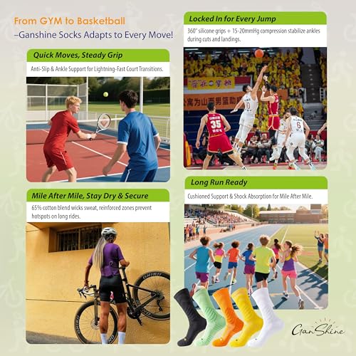 Pro Compression Calf-Length Sports Socks 5-Pack for Men & Women - Anti-Slip Cushioned Athletic Socks with Moisture Control, 360° Ankle Lock & Shock Absorption for Basketball, Running, Hiking 6