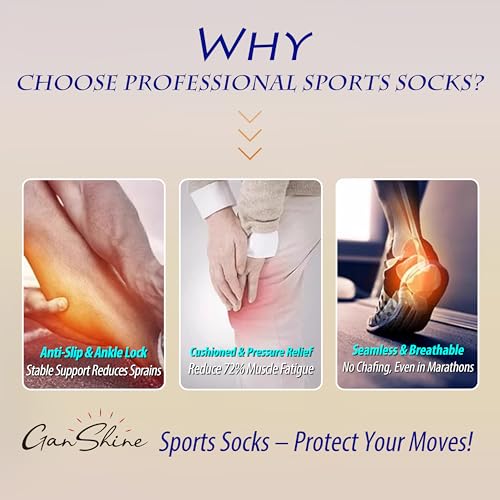 HOT ! Pro Compression Calf-Length Sports Socks 5-Pack for Men & Women - Anti-Slip Cushioned Athletic Socks with Moisture Control, 360° Ankle Lock & Shock Absorption for Basketball, Running, Hiking