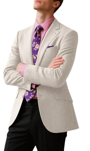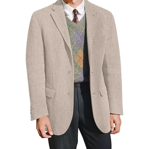 More information about Herringbone Tweed Men Suit Jacket Blazer Wool Blend Formal Prom Dinner Tuxedo Jackets Blazers Business Suits Separates Sport Coats for Men Champagne 2XL
