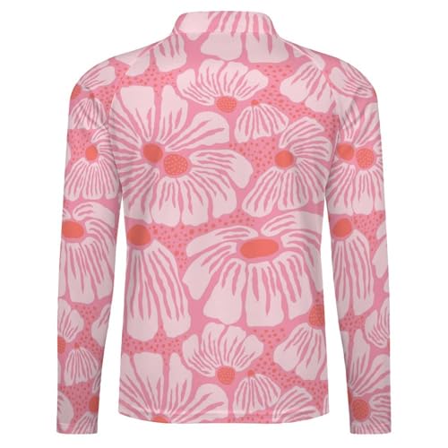 Tropical Hand Drawn Flowers Men's Rash Guard Long Sleeves Quick Dry Fishing Workout Shirts with Zipper 4
