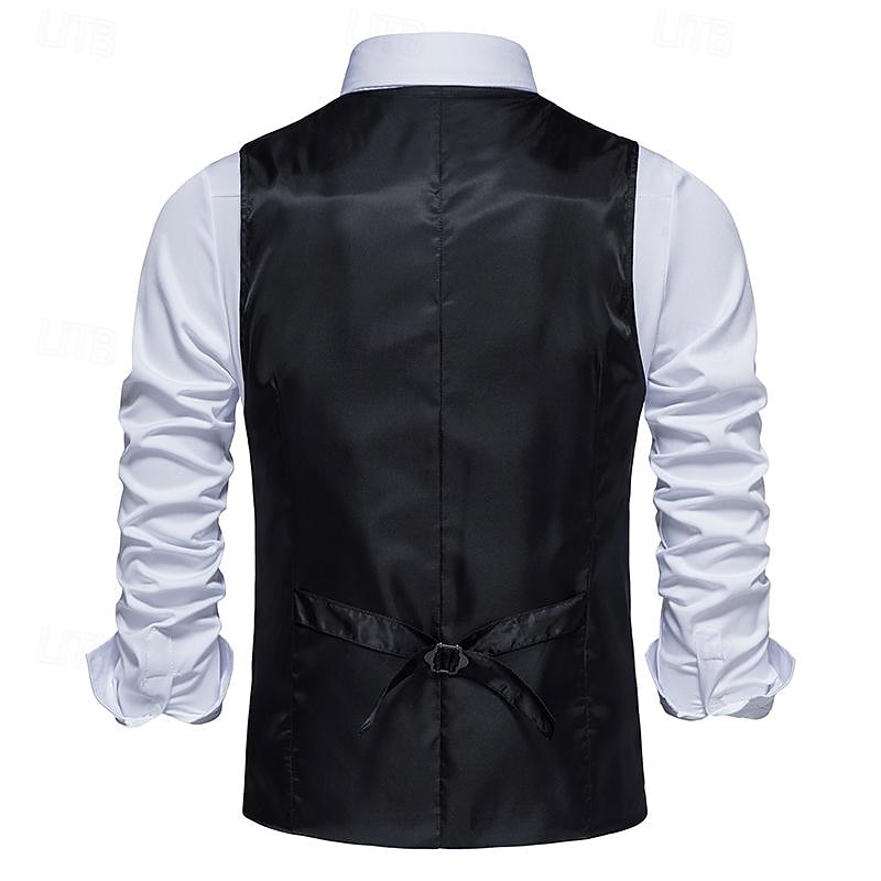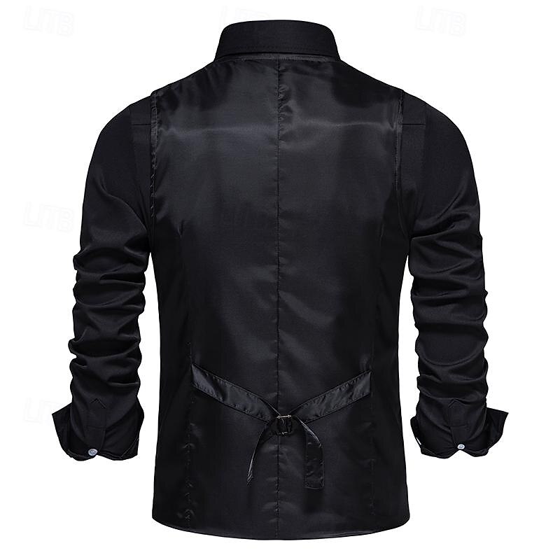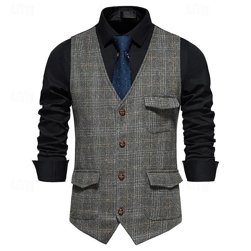 More information about Men's Vest Gilet Business Casual Wedding Party Dress Comfortable Spring, Fall, Winter, Summer Polyester 95% Polyester 5% Spandex Plaid / Check Buttoned Front V Neck Regular Fit Black Khaki Gray Vest