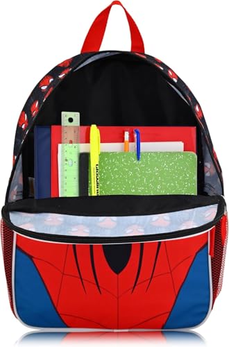 • This Spiderman backpack for kids has plenty of space for folders, notebooks, and books. The front accessory pocket is perfect for holding Spiderman pencils, pens, school supplies, toys, snacks, and more!