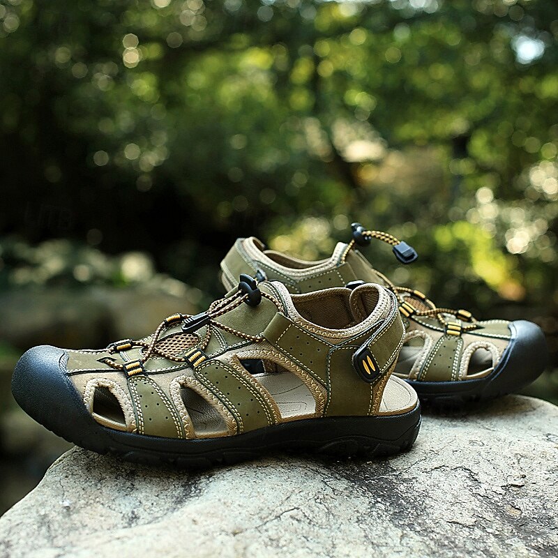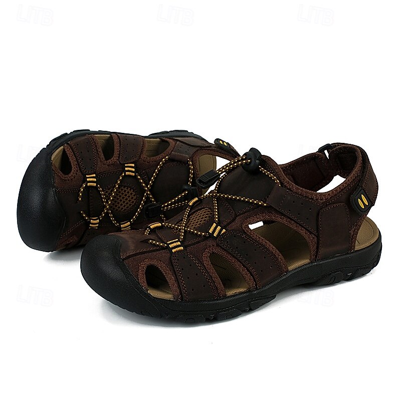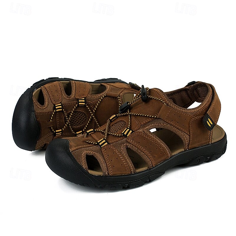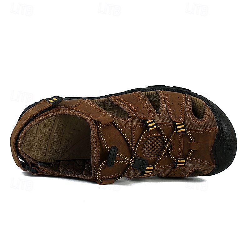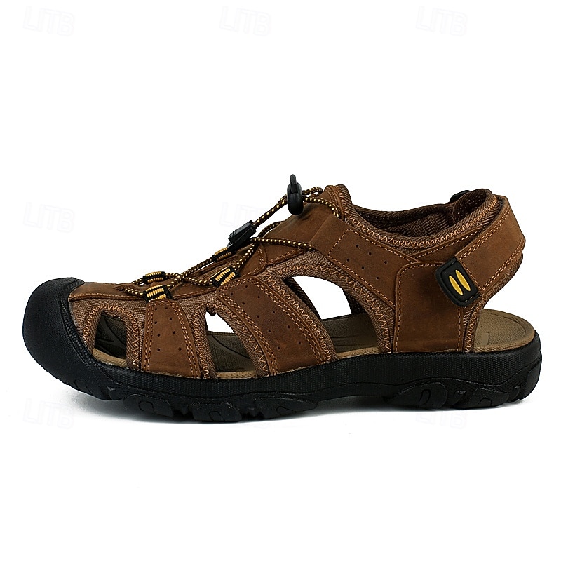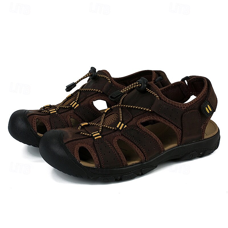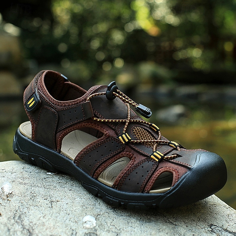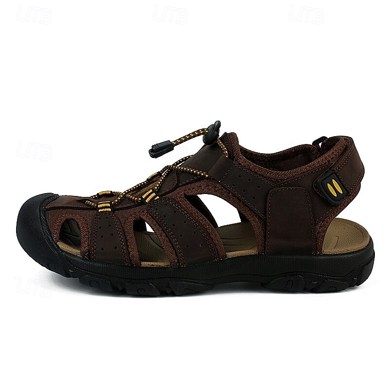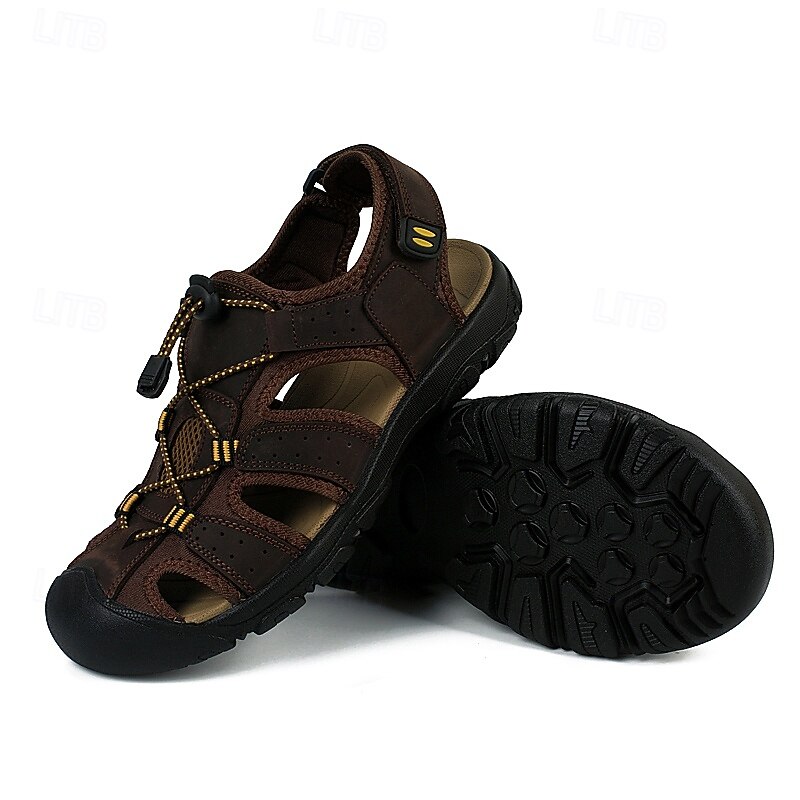 More information about Men's Brown Faux Leather Hiking Sandals - Closed-Toe, Breathable, Adjustable Drawstring, Anti-Slip Sole, Durable Outdoor Footwear for Summer Trekking and Camping