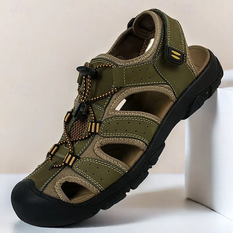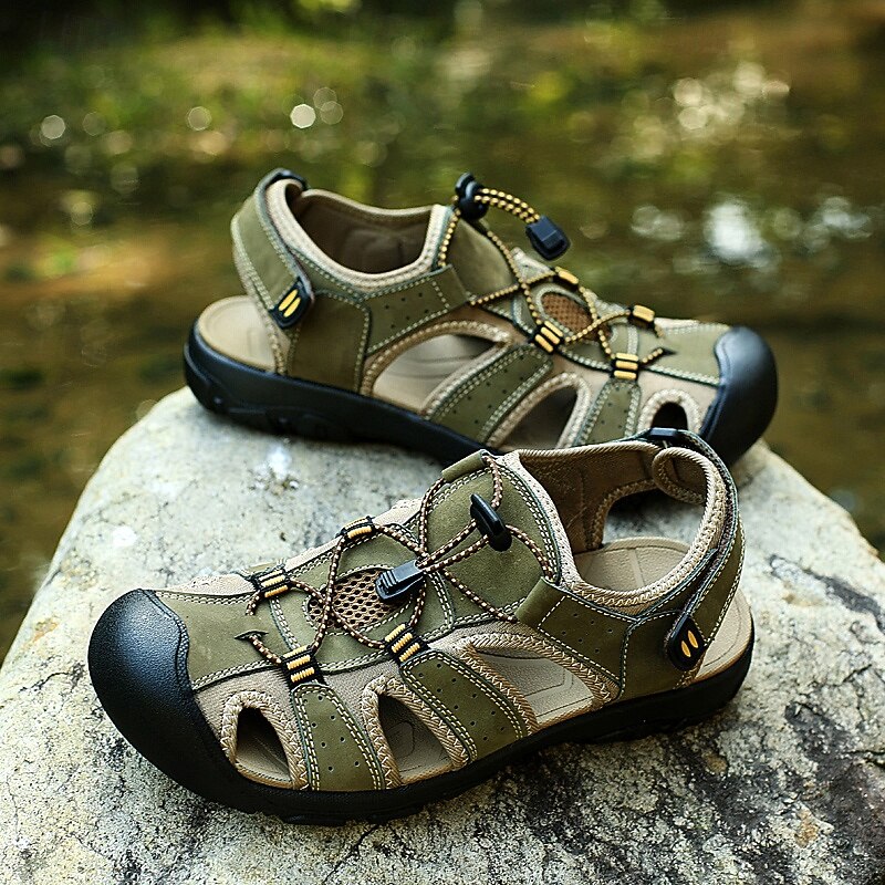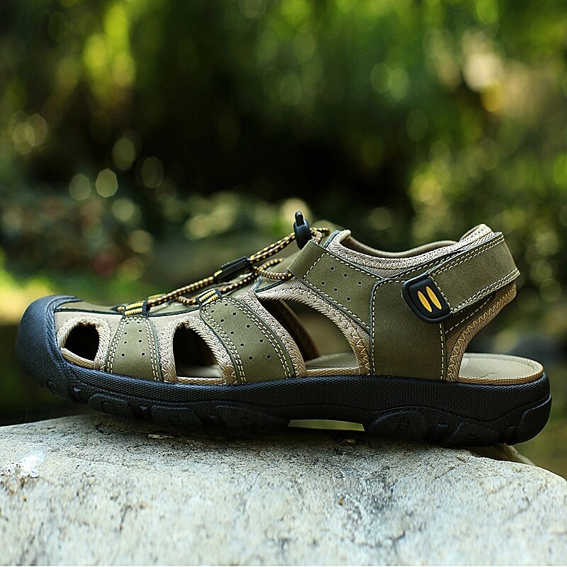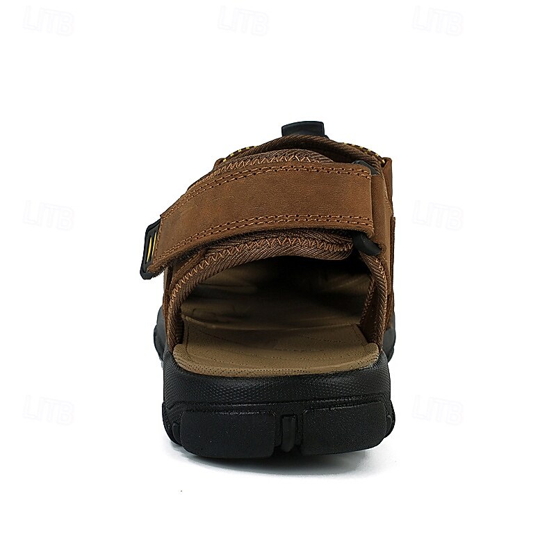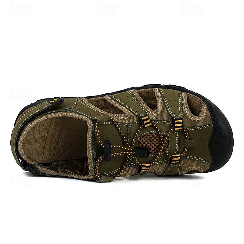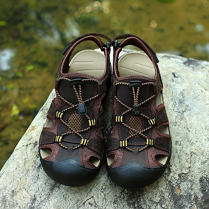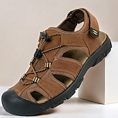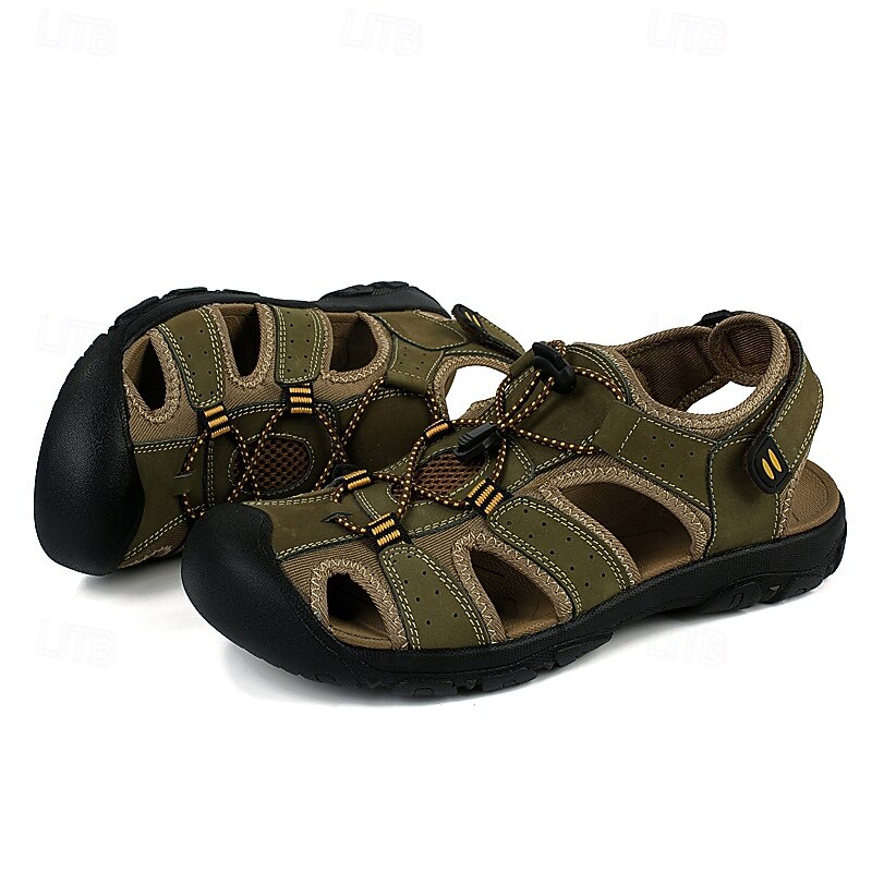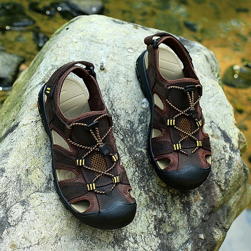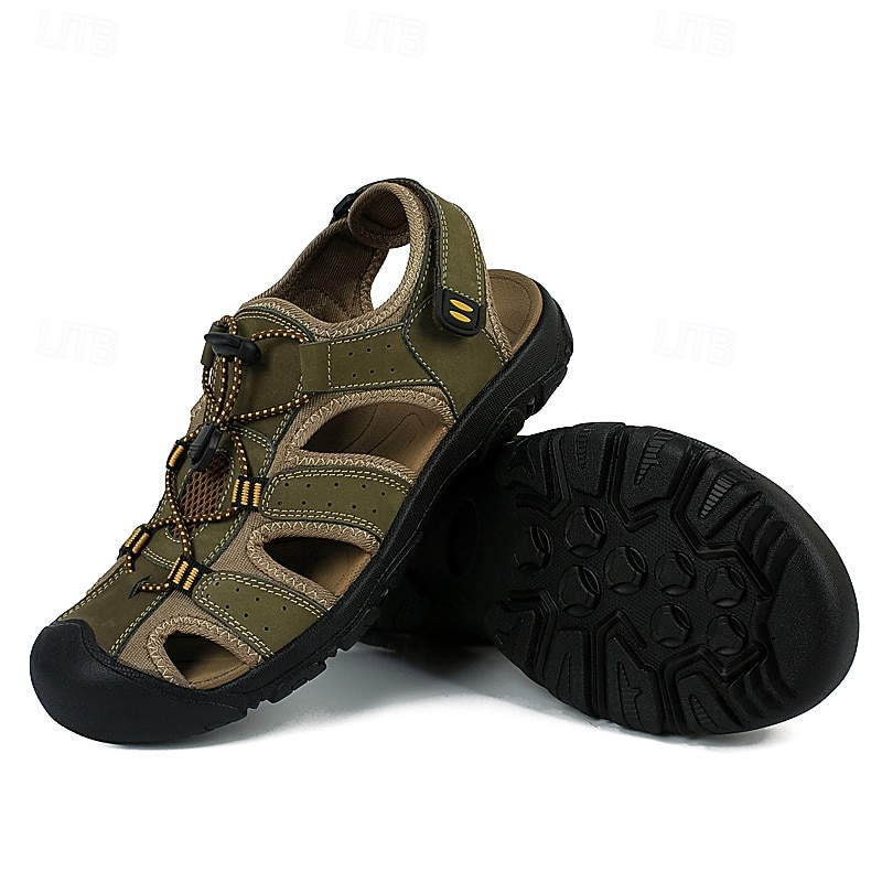 More information about Men's Brown Faux Leather Hiking Sandals - Closed-Toe, Breathable, Adjustable Drawstring, Anti-Slip Sole, Durable Outdoor Footwear for Summer Trekking and Camping