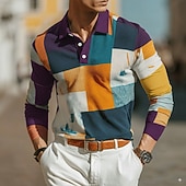 More information about Men's Color Block Polo Long Sleeve Polo Shirts Lapel Business Casual Outdoor Street Athleisure Daily Wear 3D Print Buttons Spring Fall Winter Yellow Blue Purple