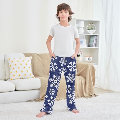 HOT ! Boys' Pants Christmas White Snowflakes Blue Long Bottoms Jogger Pants Elastic Waist Trousers with Pockets S-XL