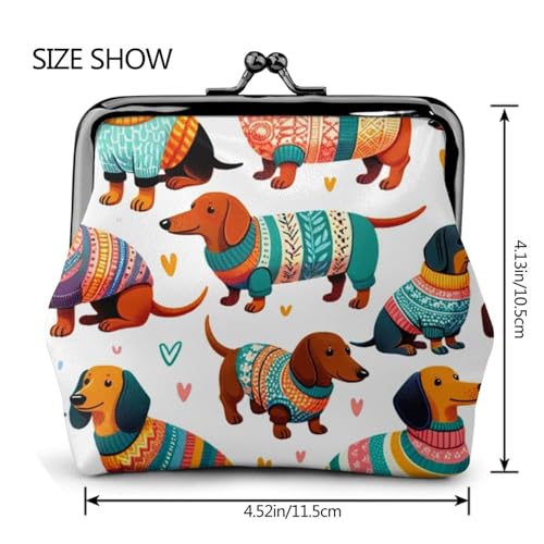 Pu Leather Buckle Coin Purse Colorful-Dachshunds-In-Sweaters Girls Kiss-Lock Change Purse Wallets 1