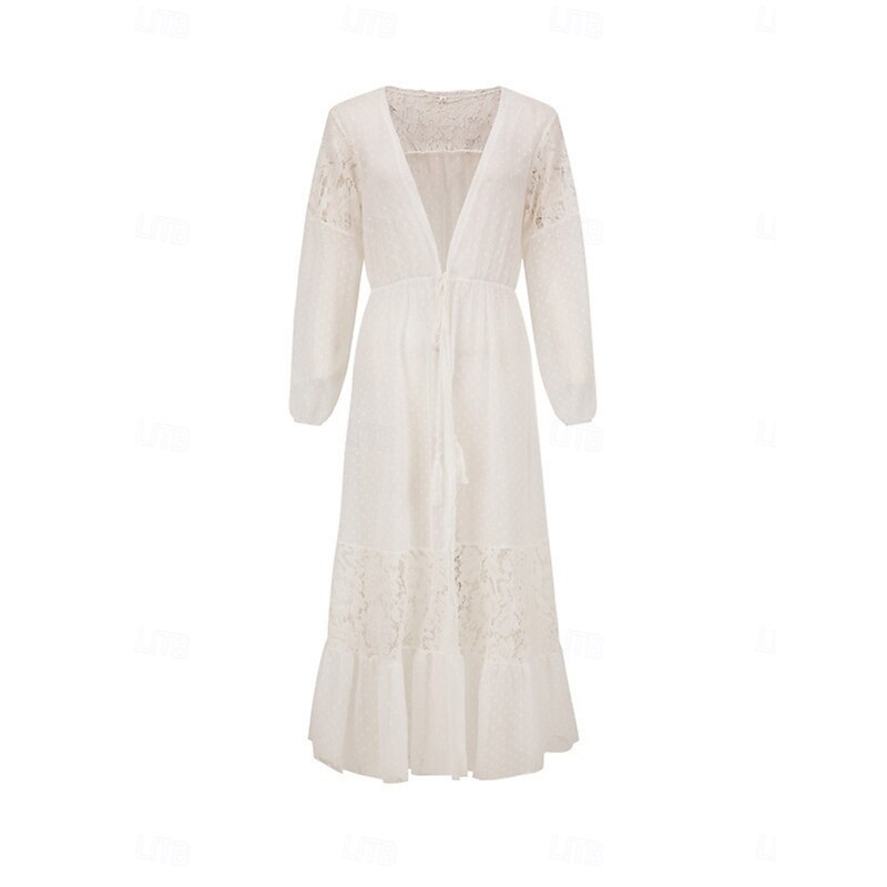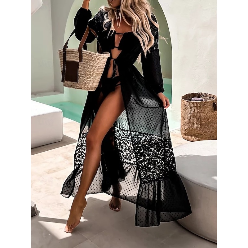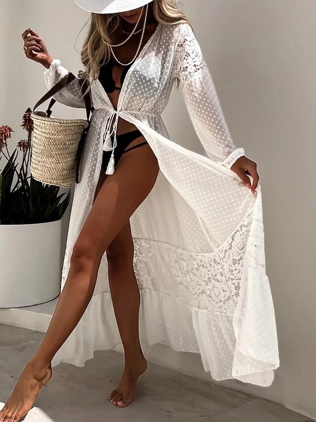 More information about Women's Swimsuits Cover Up Swimsuit Lace Patchwork Vacation Beach Wear Solid Color V Neck Long Sleeve Bathing Suits