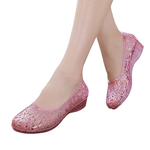 ZTWUTANG Women's Shiny Soft Hollow Ballet Flats Beach Jelly Shoes 6