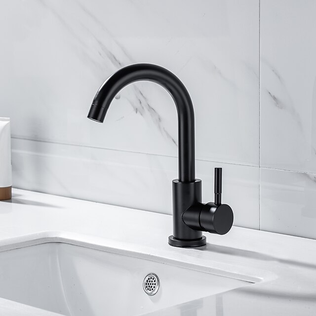 Bathroom Sink Faucet - Rotatable / Classic Stainless Steel / Painted Finishes Centerset Single Handle One Hole Bath Taps 13