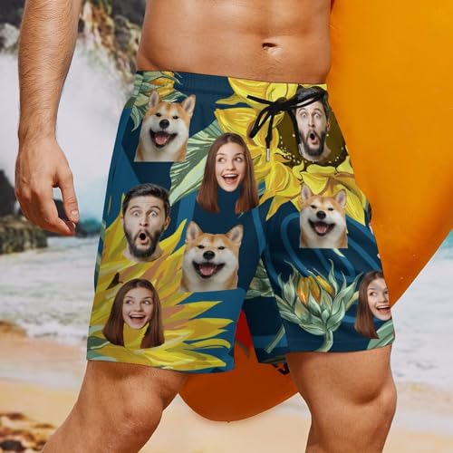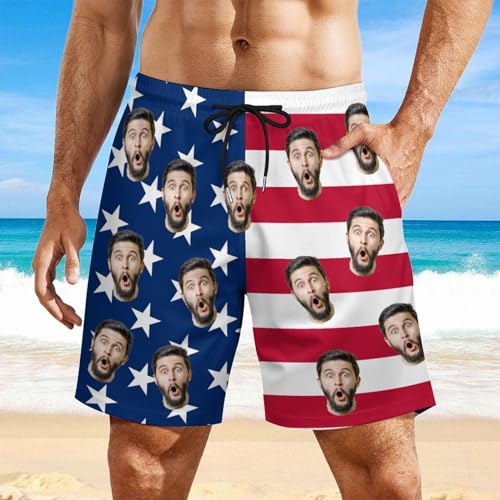 HOT ! Custom Mens Swim Trunks with Faces Personalized Funny Swim Shorts Design by Photo Beach Board Shorts