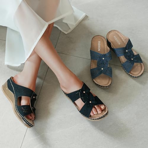 Womens Wedge Sandals, Platform Sandal Dressy Summer Slides Comfortable Walking Shoes, Soft Casual Orthopedic Sandals Shoes for Women 7