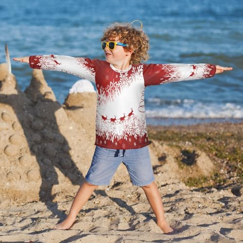 Boys Rash Guard Swim Shirt Long Sleeve UPF+ 50 Sun Shirts Quick Dry Shirt Christmas for Toddler Kids 6