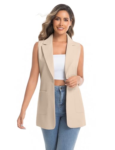 • IDEALSANXUN Womens sleeveless blazer suit jackets long blazer vest dressy fashion suit vest tops