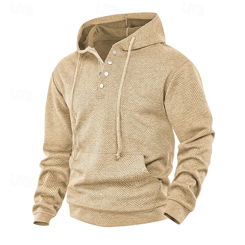 More information about Men's Jacquard Hoodie Pullover Hoodie Sweatshirt Button Up Hoodie Apricot Black White Navy Blue Gray Hooded Plain Patchwork Color Block Textured Sports & Outdoor Casual Daily Streetwear Cool