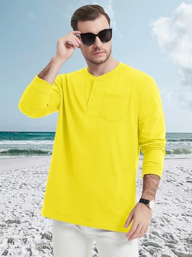 • Design: This henley long sleeve shirt features amber colored buttons and a chest pocket design, combining simplicity and style.
