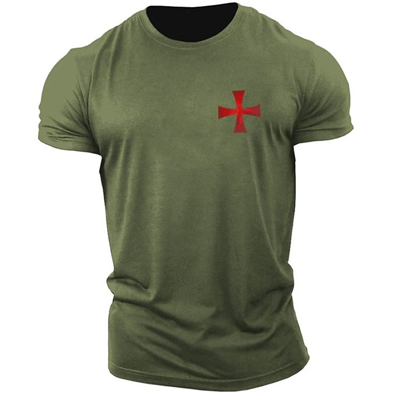 Men's White Short Sleeve T-Shirt with Templar Cross Graphic, Crusader Style 11