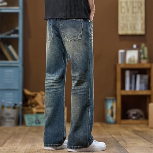 More information about Men Bootcut Denim Pants Retro Blue Streetwear Vintage Jeans Trousers Cowboys Loose Flared Jeans