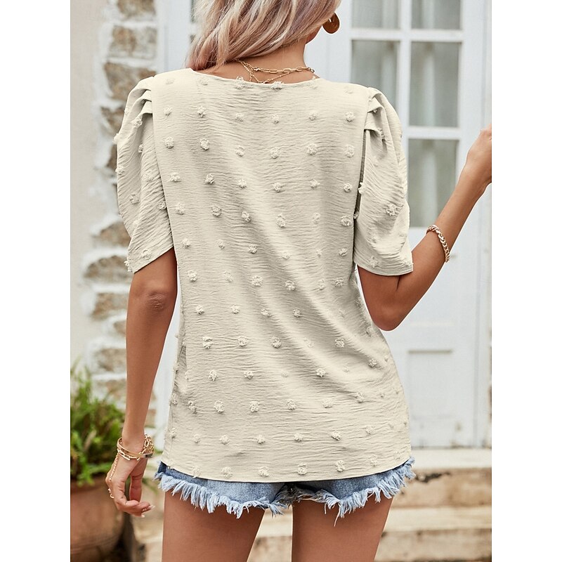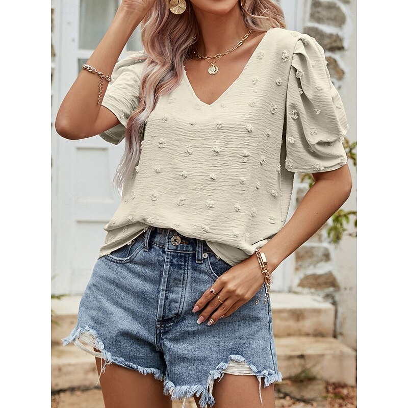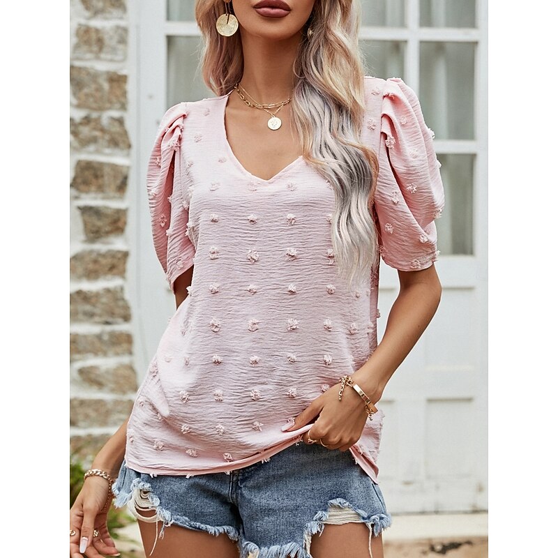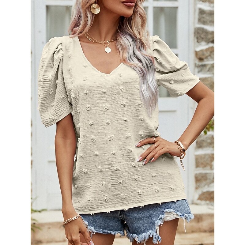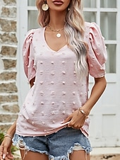 This Women's T Shirt Plain Fashion up-to-date Casual Short Sleeve Puff Sleeve V Neck Regular Tops Daily Weekend Pink Blue Beige Summer combines elegant design with practical functionality. Every detail has been carefully considered to ensure you get the best possible experience. The excellent construction means this product will serve you well for years to come.