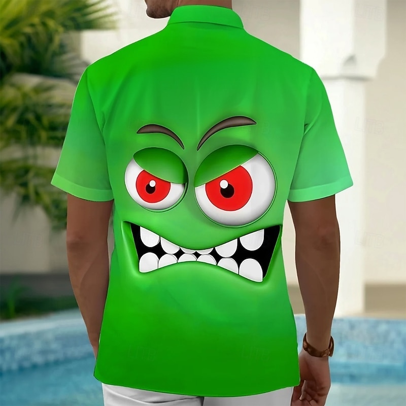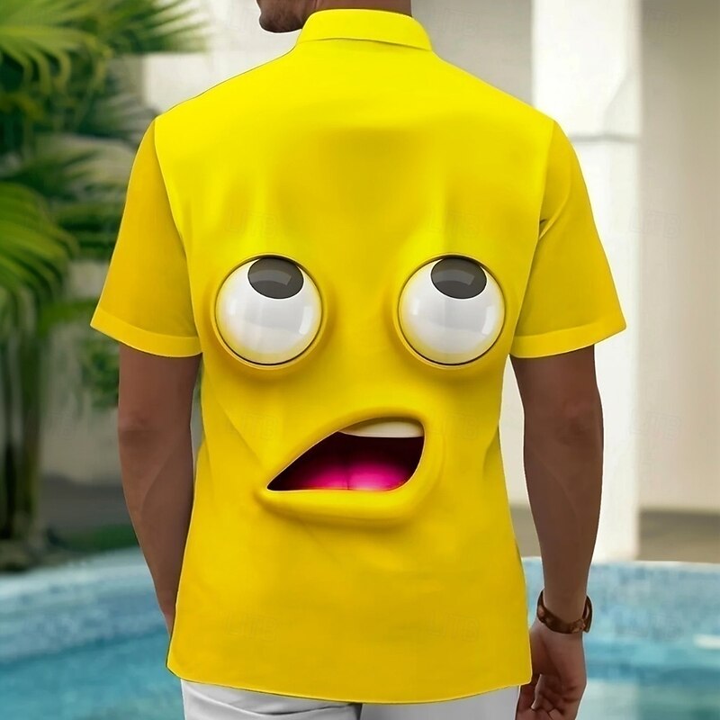 Men's Cartoon Funny Smile Face Shirt Summer Shirt Button Up Shirt Short Sleeve Fashion Casual Outdoor Vacation Dailywear Summer Spring Turndown 3D Print Collared Shirts Front One Pocket Yellow Blue 10