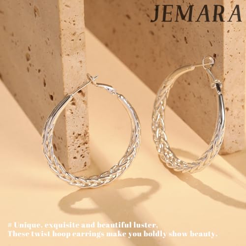 • Exquisite Silver Hoop Earrings: JEMARA specializes in designing unique silver hoop earrings for women; Our latest silver hoops earrings are made of multiple smooth and delicate lines woven and twisted; Exquisite craftsmanship ensures the lasting beauty and luster of the sterling silver earring hoops; The 5mm width makes the large silver hoops not easy to deform or break, and the gradient arc design greatly reduces the weight of the silver hoop earrings, allowing you to easily wear them all day