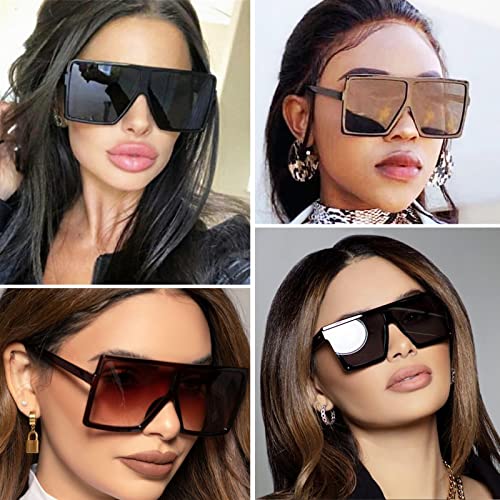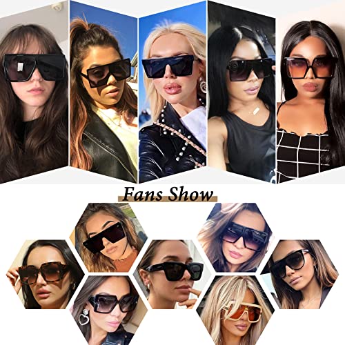 Oversized Square Sunglasses Womens Trendy Flat Top Shades Sunglasses for Women Men Large Fashion UV Protection 4