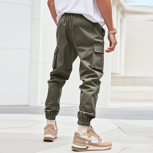 HOT ! Cargo Pants for Men Work Elastic Waist Drawstring Trousers Stretch Breathable Fashion Quick Dry Lounge Hiking Clothes
