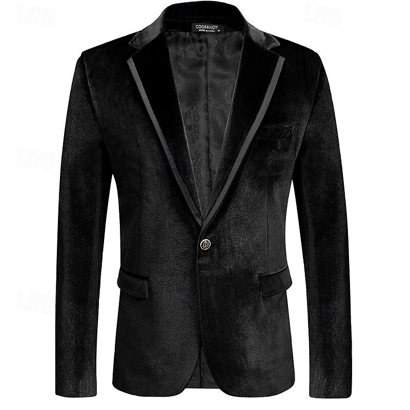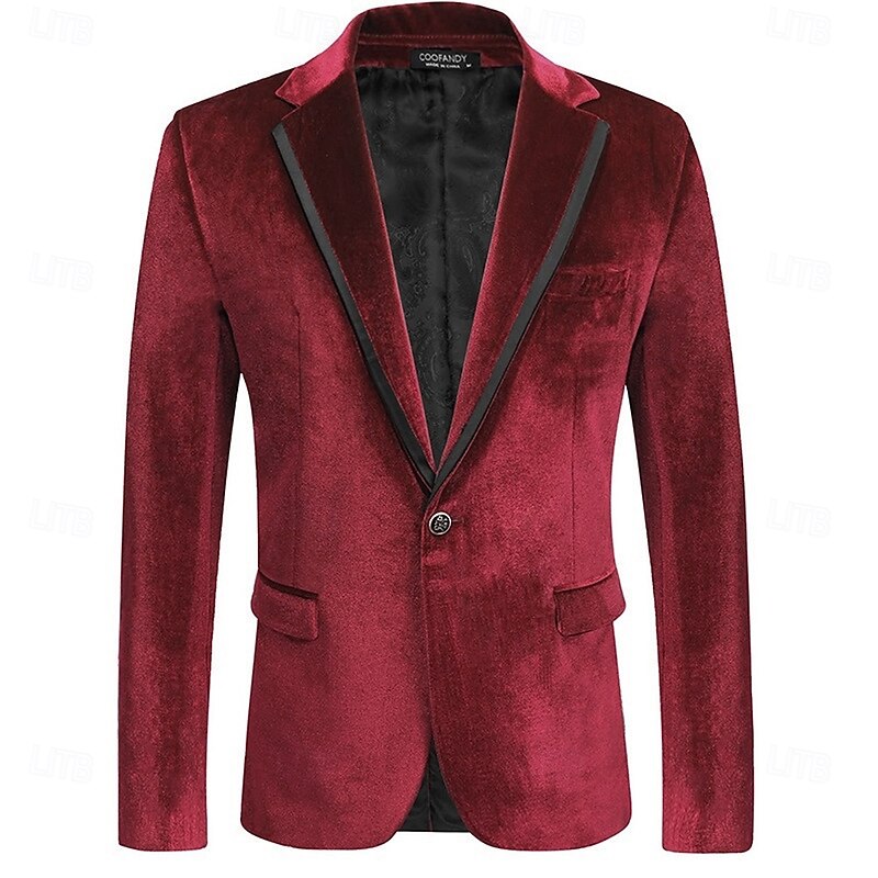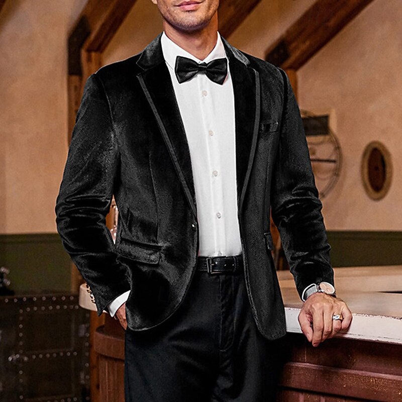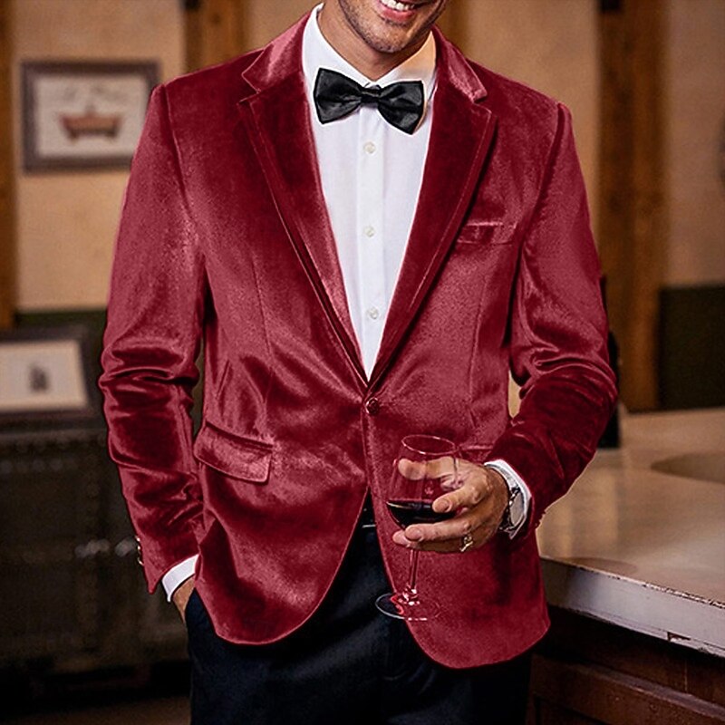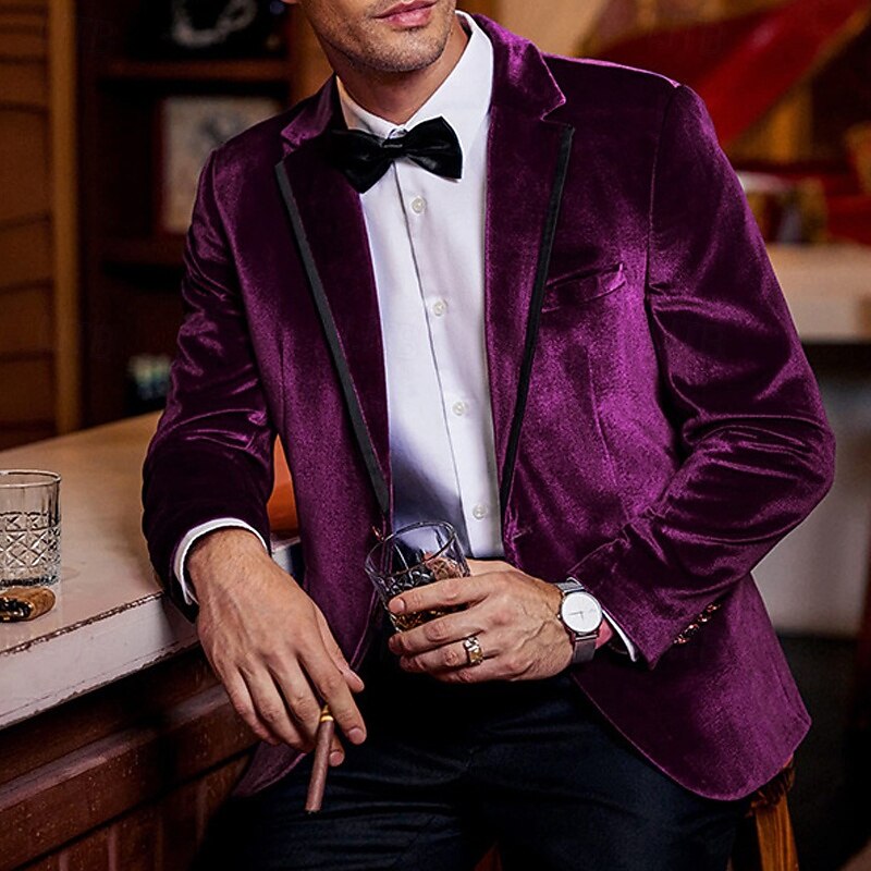More information about Men's Blazer Velvet Blazer Business Cocktail Party Wedding Party Fashion Casual Spring & Fall Polyester Solid Color Pocket Buttons Comfortable Single Breasted Blazer Black Red Blue Purple