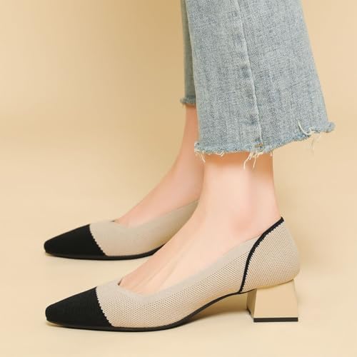 HOT ! Women's Knit Mesh Block Heel Pumps Pointed Closed Toe Fashion Splicing Slip-On Pumps Outdoor Office Party Dress Shoes