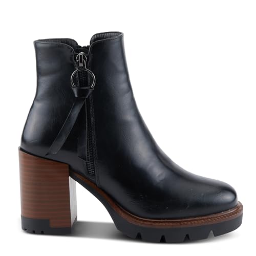 HOT ! PATRIZIA Women's AHANA Sleek Leather Booties with Burnished Finish, Inset Heel, and Zipper Closure