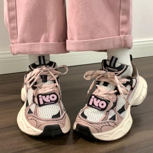 Pink Retro Dad Sneakers for Women & Girls - Breathable Mesh & Chunky Platform Cute Shoes, Y2K Streetwear Chic for Beach Travel, City Walk, Cloud-Like Comfy Athleisure, Kawaii Everyday, Back to School 2