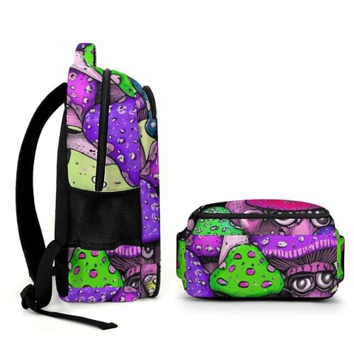 Lightweight Backpack, Women's Elegant Colorful Mushrooms Art Backpack with Pockets and Handle, Reusable Sturdy Travel Shoulder Bag 1