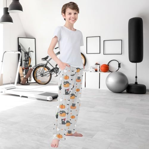 Boy's Pj Pants Halloween Cute Cat Pumpkin Lounge Bottoms Elastic Kids Sweatpants Joggers with Pockets Size 6-14 5