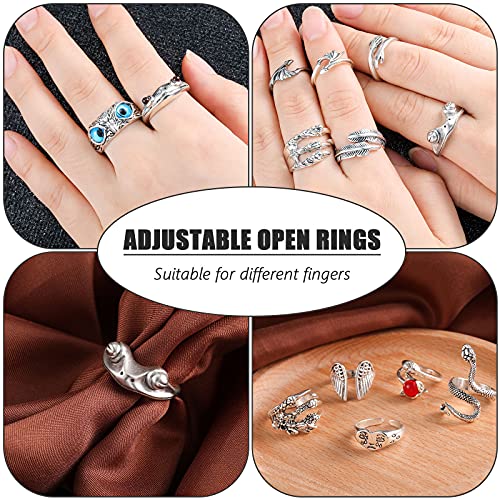 Hicarer 24 Pieces Gothic Rings Set Adjustable Open Rings Vintage Animal Frog Snake Open Rings Cool Punk Gothic Stackable Ring Jewelry for Couples Men Women(Classic Style) 4