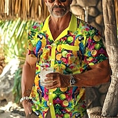 More information about Men's Fruit Parrot Shirt Summer Hawaiian Shirt Aloha Shirt Short Sleeve Shirt Cuban Collar Hawaiian Casual Outdoor Street Casual Daily Yellow Pink Green S M L
