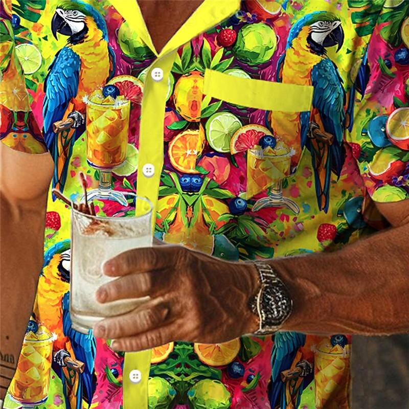 Men's Fruit Parrot Shirt Summer Hawaiian Shirt Aloha Shirt Short Sleeve Shirt Cuban Collar Hawaiian Casual Outdoor Street Casual Daily Yellow Pink Green S M L 5