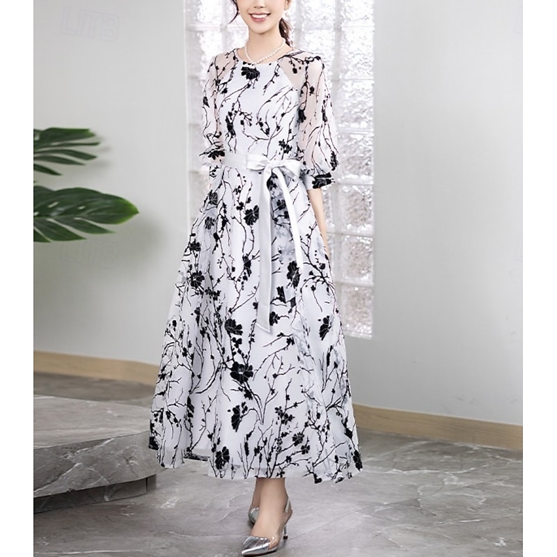 More information about A-Line Dress Mother of the Bride Dress Formal Elegant Vintage See Through Jewel Neck Ankle Length Chiffon Half Sleeve with Lace Embroidery