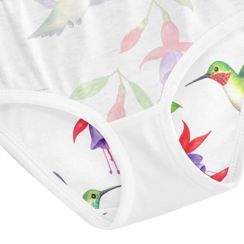 Funny Toddler Girls Underwear 2t Cotton Panties for Girl Watercolor Hummingbirds Flowers White Underpants Briefs 4