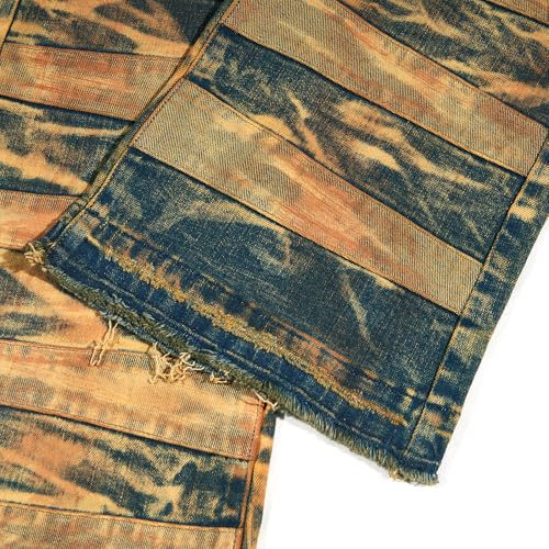 • Design features: Fashionable loose jeans; straight stacked leg design; mid-waist design; zipper pull rope-style zipper closure; trendy tie-dye patchwork design, cool punk style, popular streetwear. The pockets on both sides of this set of sports pants are deep enough to hold your phone, cards and keys to prevent them from falling out when you move.