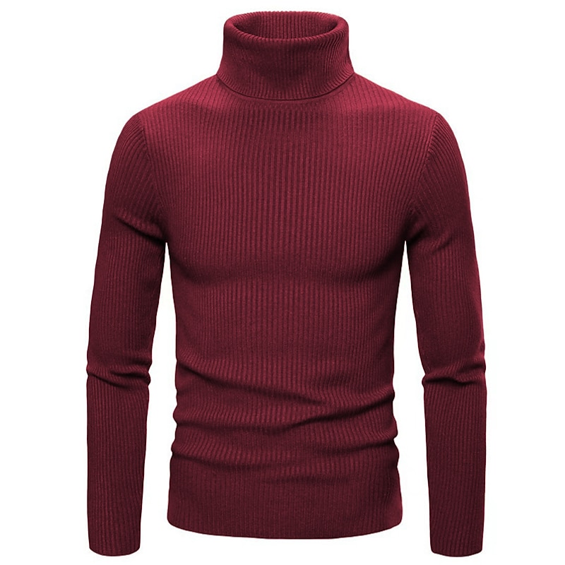 More information about Men's Turtleneck Sweater Pullover Sweater Jumper Cropped Sweater Ribbed Knit Regular Tops Knit Plain Turtleneck Modern Contemporary Work Daily Wear Clothing Apparel Winter Wine Black S M L