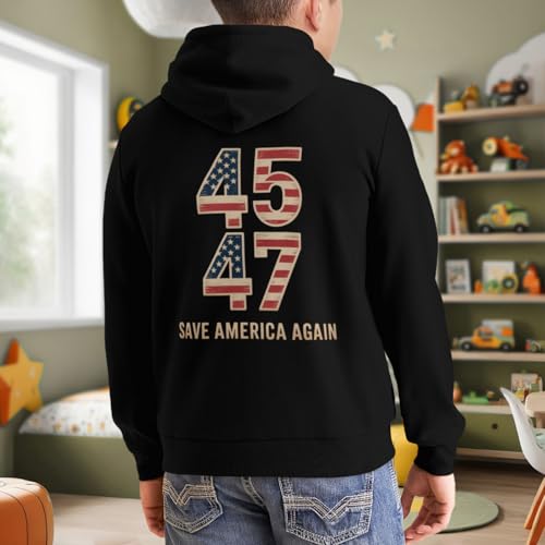 HOT ! Kids 45th And 47 Save American Again Boys Girls Lightweight Kangaroo Pocket Fleece Hoodies