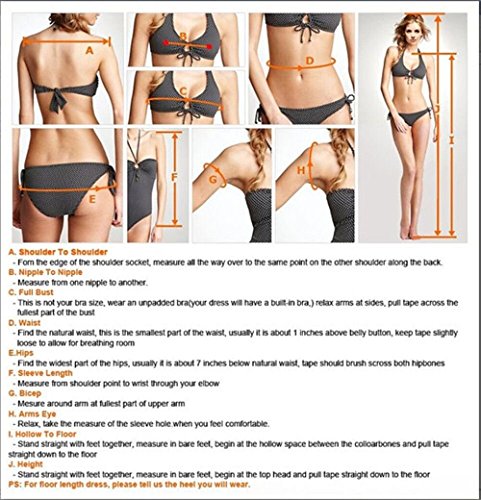 • Size : Please refer to our Size Chart Image in the left,it's very important!!!Custom Service is available. you can send us your details.Size: Bust, Waist, Hips and Hollow to Floor to custom made.