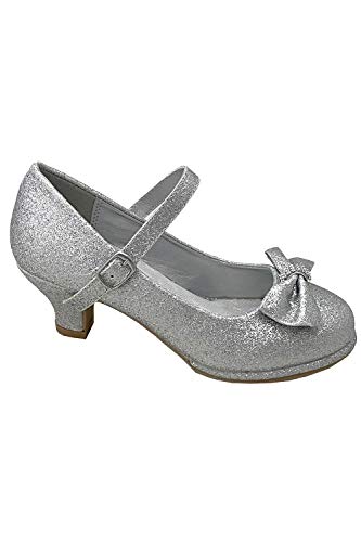 • ✨YOUR DAUGHTER WILL LOVE THEM: Big and little girls silver dress shoes with glitter and princess high heels