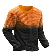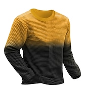 More information about Men's Waffle Tee T Shirt Waffle Knit Tee Tee Top Long Sleeve Crew Neck Spring & Fall Color Block Fashion Designer Basic Patchwork Vacation Street Going out Orange Brown Green Top Tee for Men