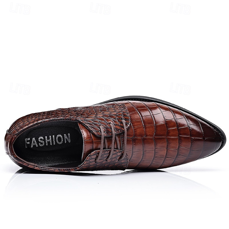 More information about Men's Brown Crocodile Pattern Faux Leather Dress Shoes – Lace-Up Formal Footwear with Textured Design for Business and Weddings