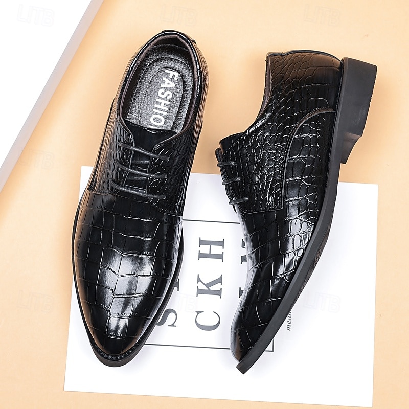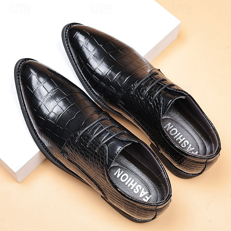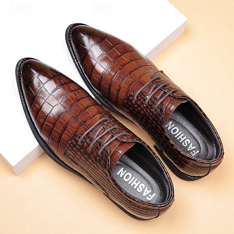 Expertly crafted from high-quality PU leather, the upper of these men's oxford shoes features an intricate crocodile pattern, offering both an opulent look and a durable finish. The rich brown color enhances its classic appeal, while the PU lining ensures breathable comfort for extended wear.