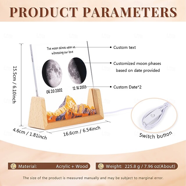 $60.99 - 1 PC Personalized Acrylic Night Light That Can Be Customized Based On A Specific Date To Show The Moon Phase With Options To Customize Text And Date. This Makes It A Personalized Gift For Lover 2025. Shop for cheap Decorative Lights online? Buy at lightinthebox.com on sale today!